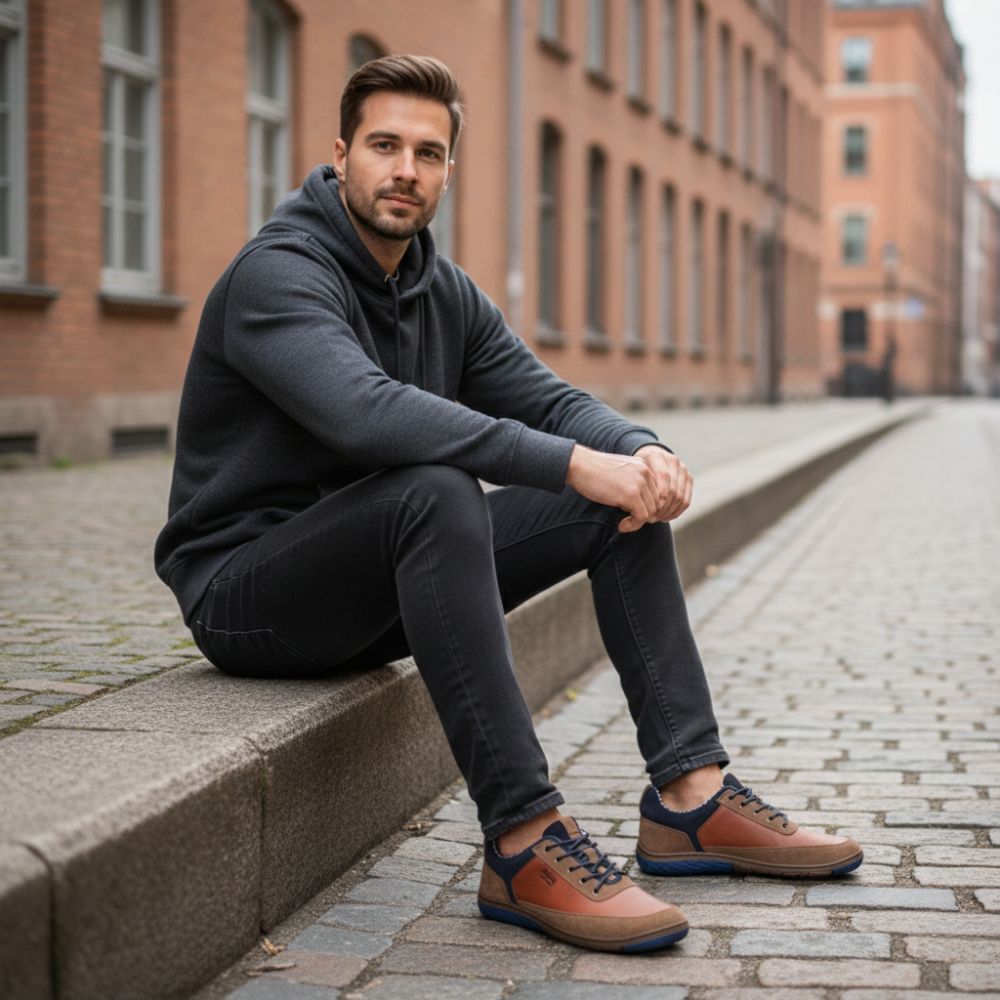 - Kautschuksohle mit Nullabsatz, dadurch Entlastung der Wirbelsäule und Schonung der Gelenke, unterstützt die natürliche Körperhaltung