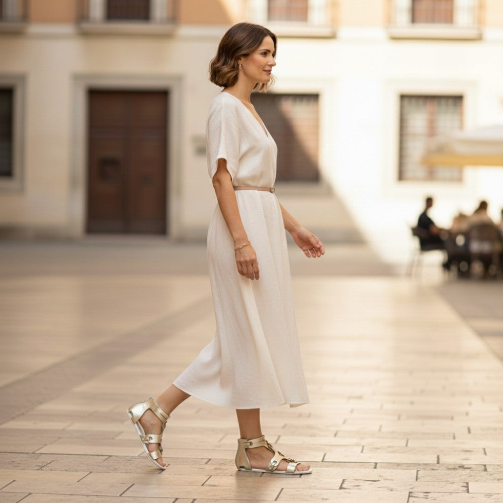 In MAROQ Gold wirst Du Dich absolut frei und trotzdem gut geschützt fühlen. Mit dem extravaganten Style machst Du jeden Weg zu Deinem Laufsteg. Diese Barfußsandale gibt Dir für jedes Outfit das gewisse Extra und schmeichelt Deiner Figur.