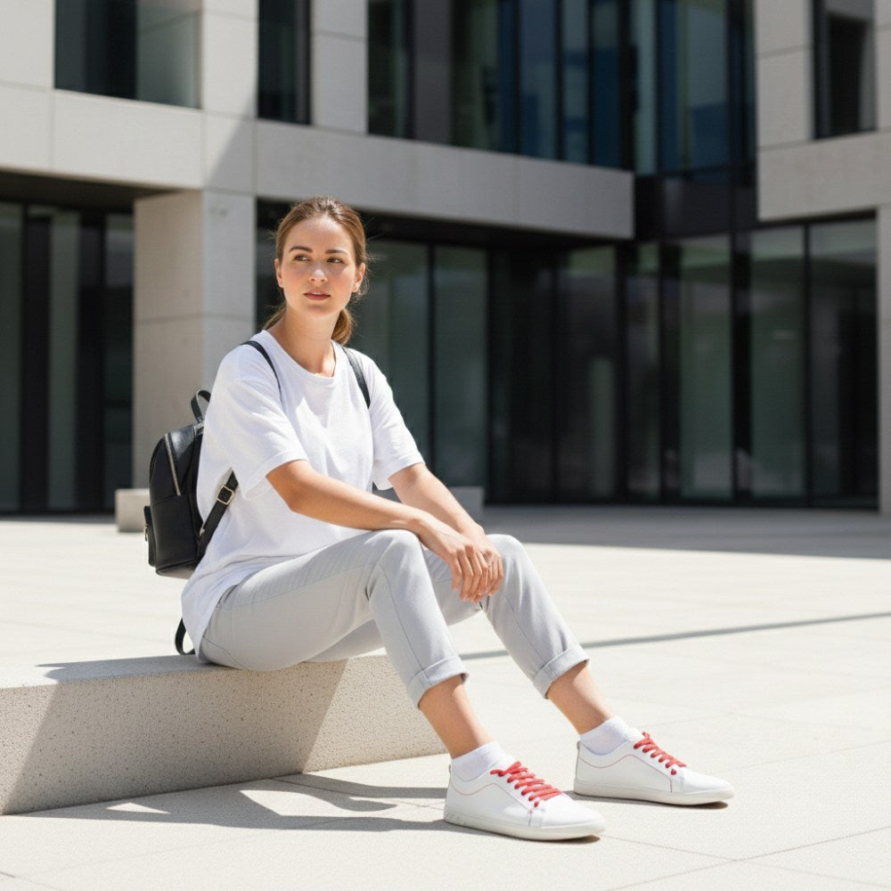 Du suchst einen modernen Sneaker, mit dem Du immer für einen Hingucker sorgst? Dann ist unser Modell STRAQ White Dein neuer Barfußschuh. Rundum in edlem Weiß und mit knallig roten Schnürsenkeln wird dieser Sneaker zu einer ganz besonders stylischen Wahl!