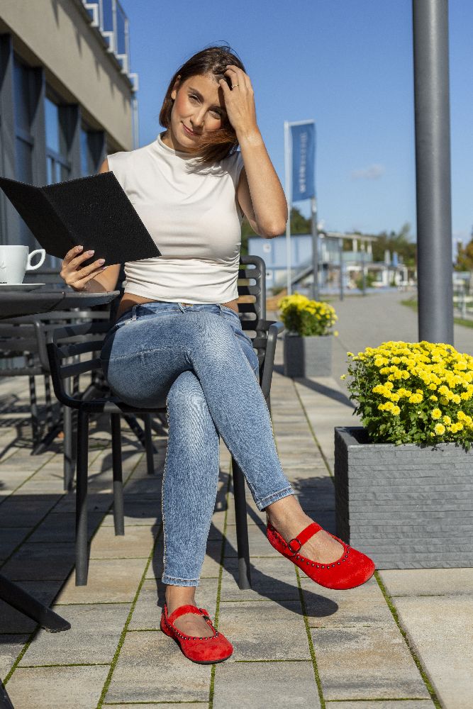La polyvalence de notre rouge Dieqo ne connaît aucune limite. Que ce soit comme un accent brillant pour votre tenue de bureau, en tant que compagnon élégant de votre robe préférée ou en tant que capteur de yeux coloré aux regards décontractés en denim - cette chaussure est un vrai caméléon qui s'adapte sans effort à chaque occasion et à chaque tenue. La combinaison des rivets Rich Red et des Riveaux brillants en fait le partenaire parfait pour ceux qui aiment définir des déclarations.
