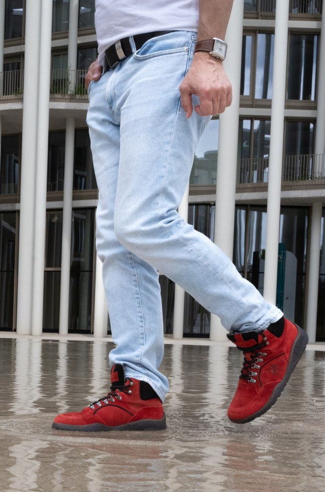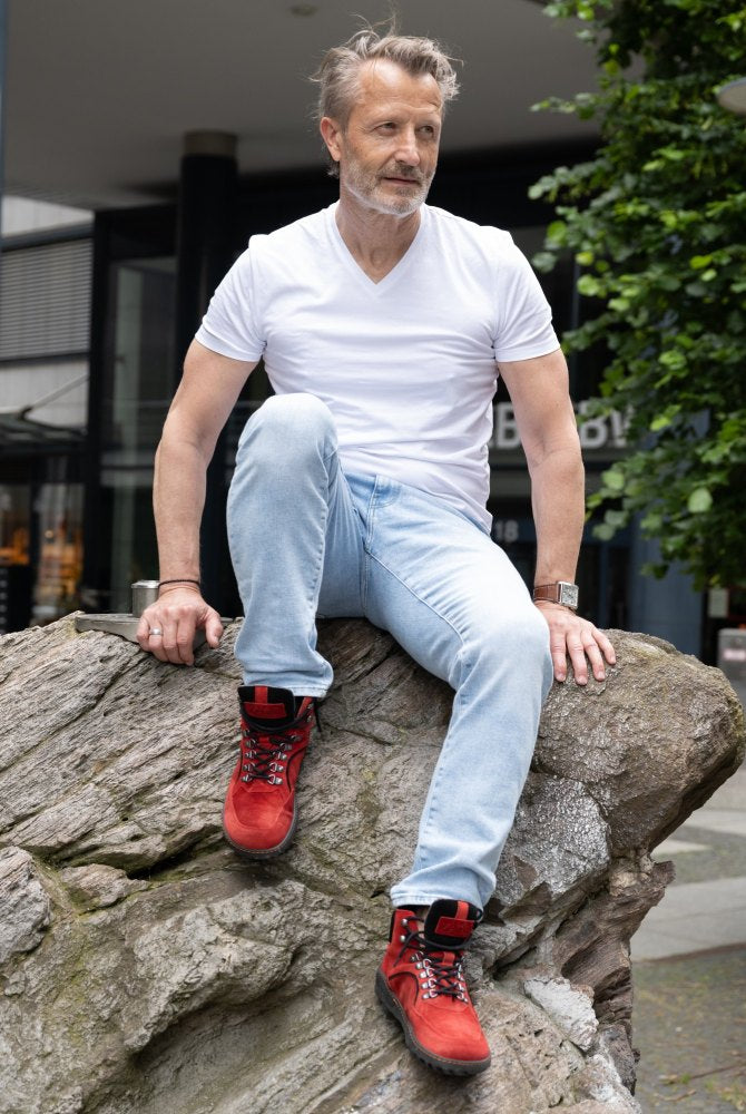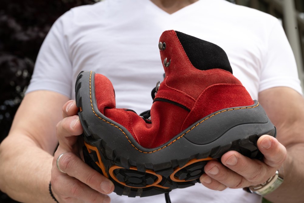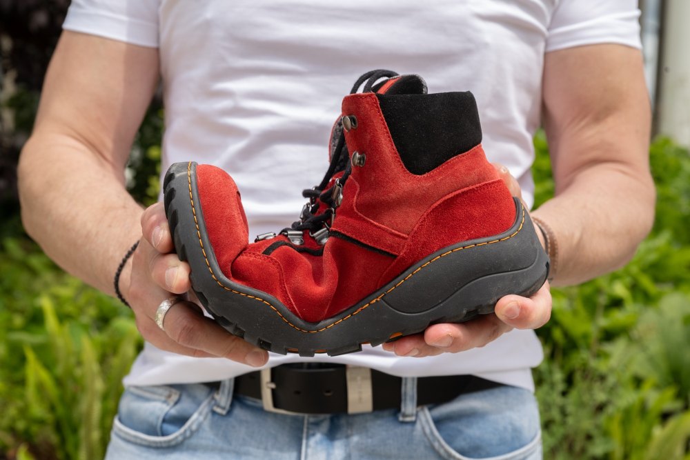 La tige est en daim doux dans un ton orange foncé. Robuste de l'extérieur, merveilleusement câlin et flexible de l'intérieur, une chaussure extérieure confortable doit être.