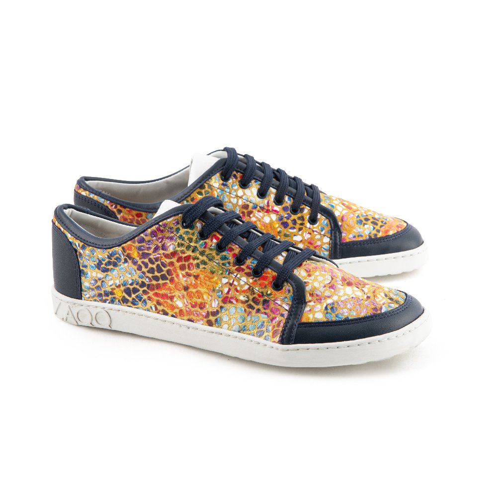 Fabriqué en cuir Nappa de haute qualité avec un motif de fleurs coloré et des détails de décalage en bleu foncé, cette chaussure aux pieds nus est un halage à œil absolu! Mais cette sneaker est également phénoménale pour vos pieds - il offre beaucoup d'espace pour les orteils et en même temps sûr en toute sécurité sur les chevilles.
