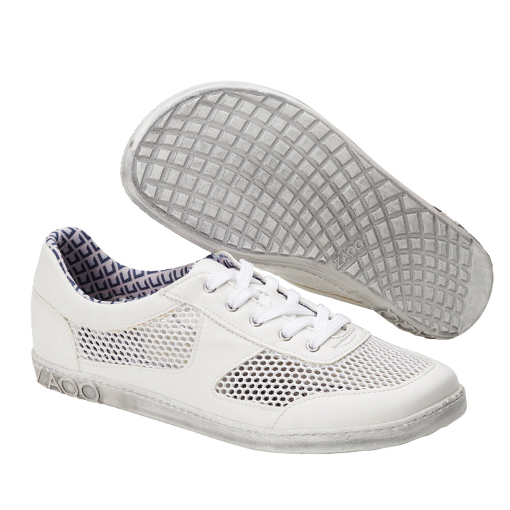 Das grobmaschige Meshgewebe sorgt dafür, dass auch an den heißesten Tagen Deine Füße gut belüftet sind. Um dem Barfußschuh mehr Stabilität zu geben, haben wir ihn mit schneeweißem Nappaleder gesäumt, welches sich wunderbar den Konturen Deines Fußes anschmiegt.