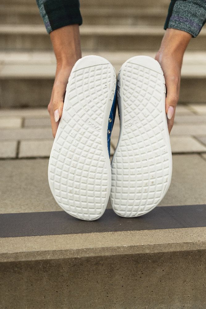 - Rubberen zool met nulhiel, waardoor de wervelkolom wordt verlicht en de gewrichten beschermt, ondersteunt de natuurlijke houding