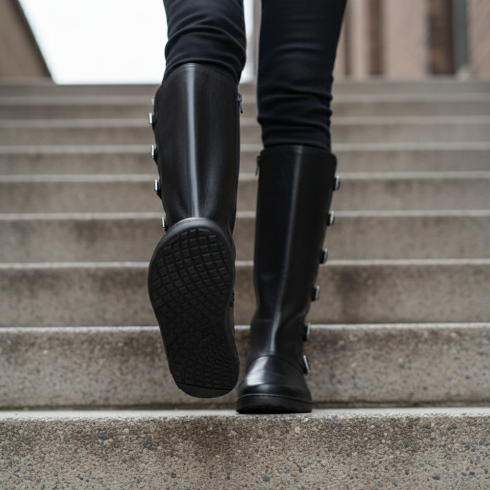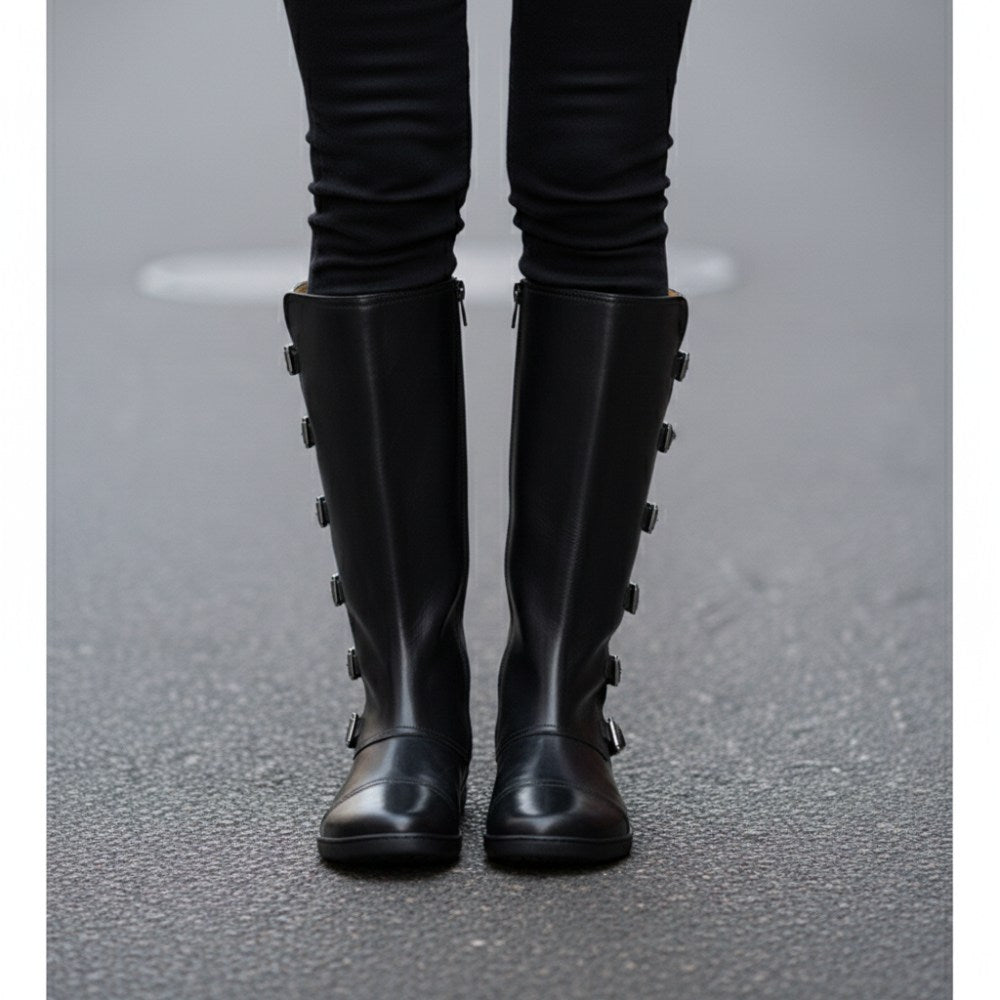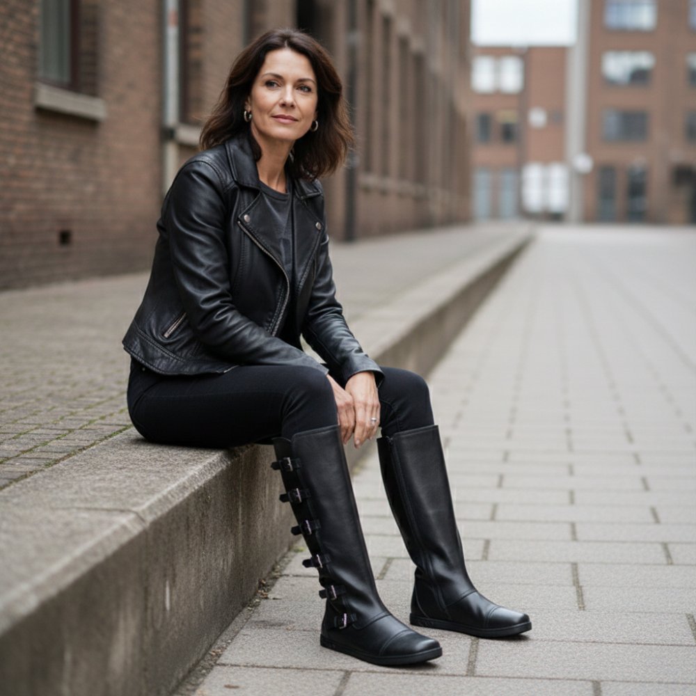 Met de teen dop en de gespen langs de hoge schacht ziet onze Pauliq er dik uit, net zoals een rocker -laars moet zijn. Toch heb je het comfort van een in hem ZAQQ Barefoot -schoenen. De absoluut platte zool is zeer flexibel en geeft je daarom het ultieme op blote voeten gevoel in een dikke laars.