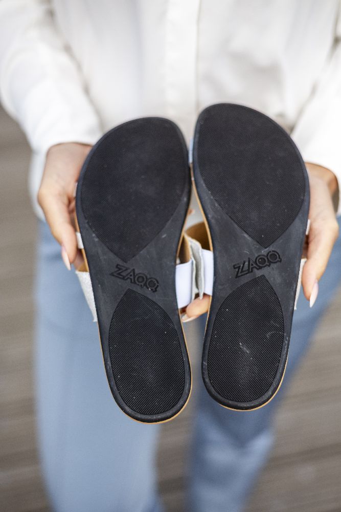 Uw nieuwe sandalen op blote voeten bestaat uit deze hoogwaardige materialen ZAQQ Qate Silver White: