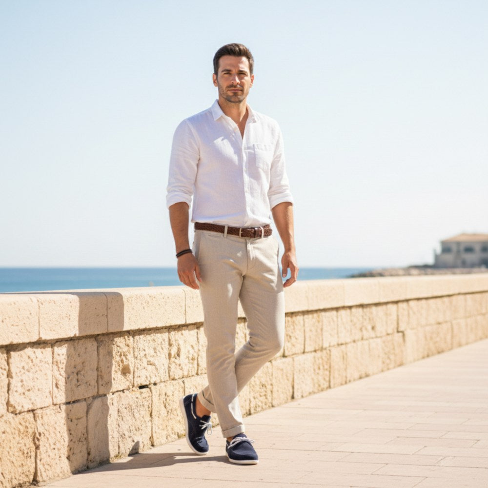 De schoenen van de Qea Velors Blue Boots combineren maritieme charme met op blote voeten comfort - de ideale metgezel voor de moderne man.