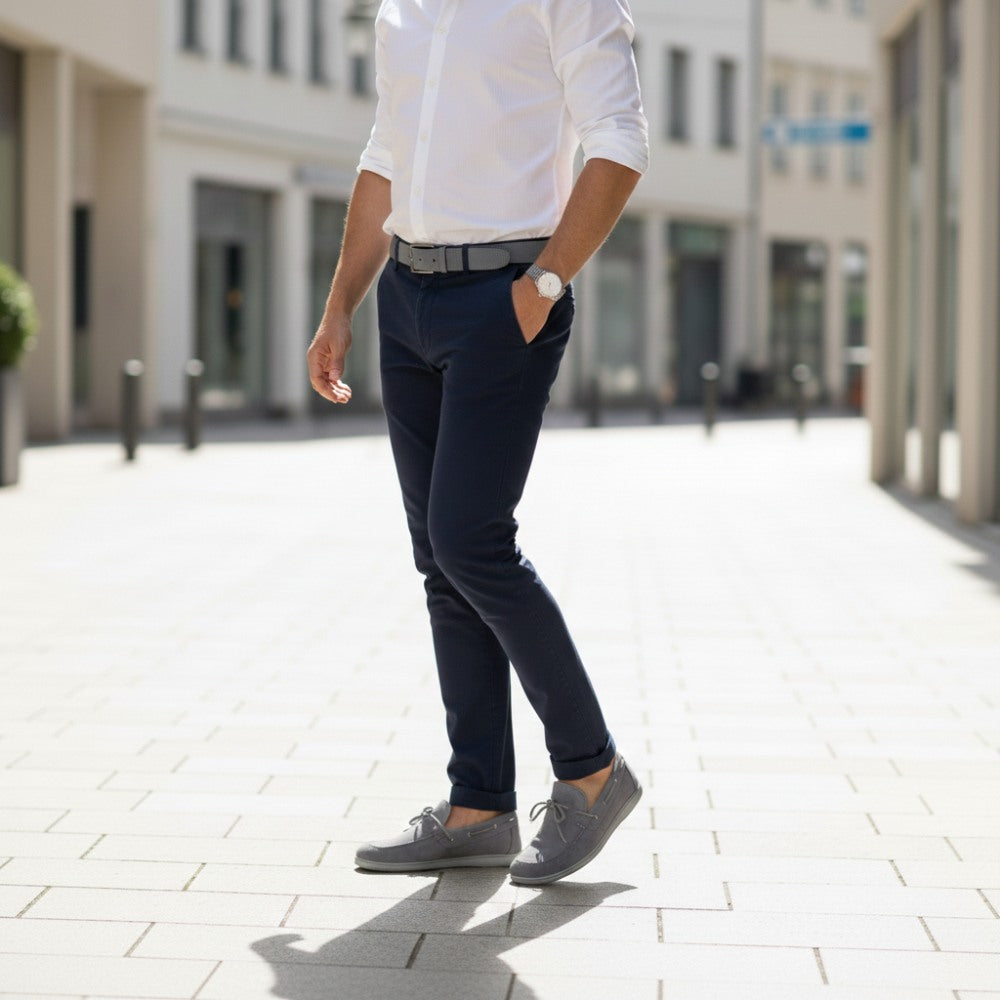 De Qea Velours Gray maakt indruk op hun elegante ontwerp: een consistent grijs uiterlijk en de typische pull -in kanten -up -upriem, die eindigt in een chique boog aan de voorkant. Deze subtiele details geven de schoen een maritieme noot die er zowel casual als chic uitziet.