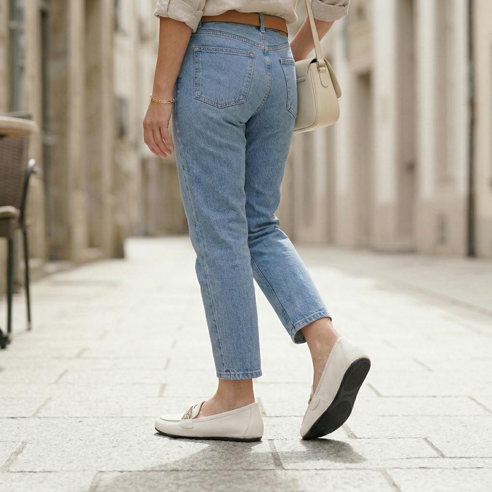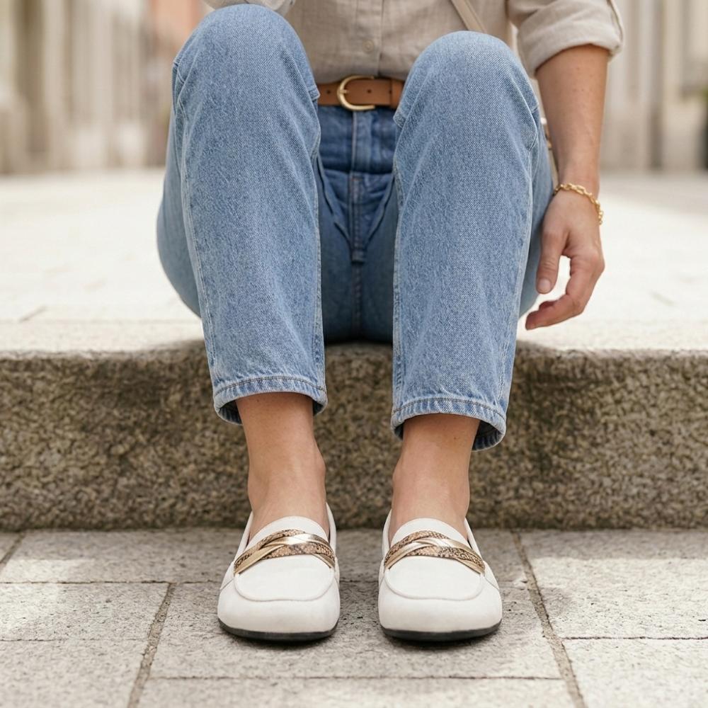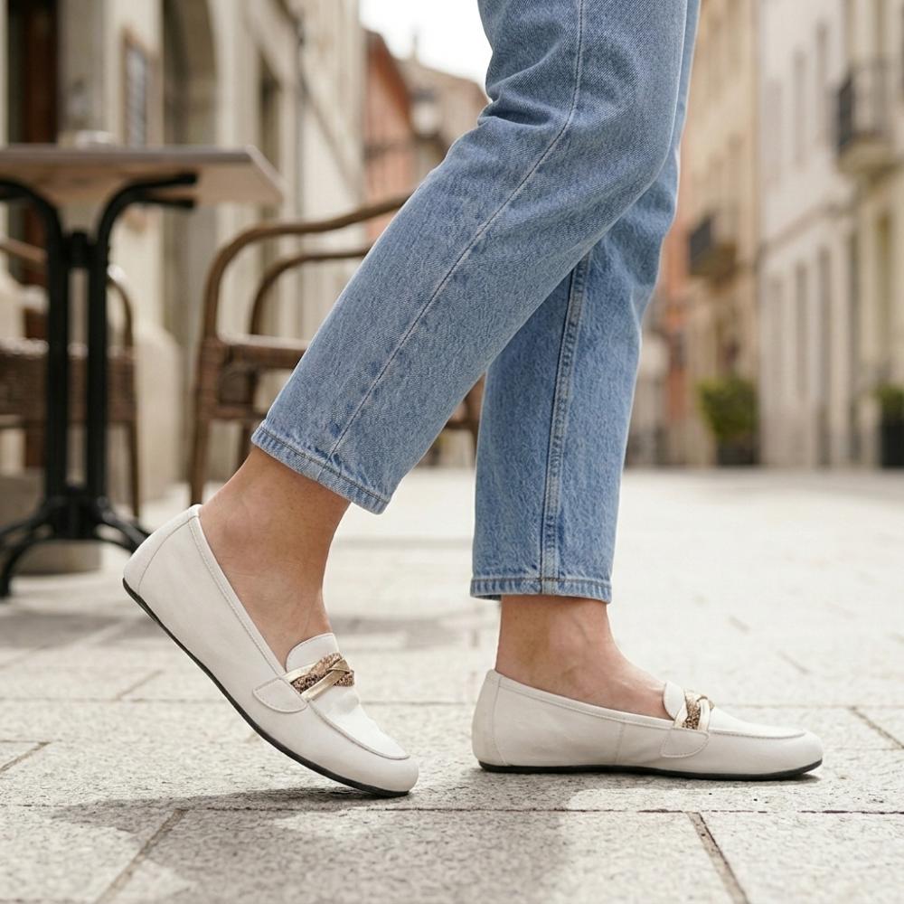 Ben je op zoek naar een blote voetschoen die bijzonder vrouwelijk is? Hier is hij, onze mocassin Qerp White zal u inspireren.