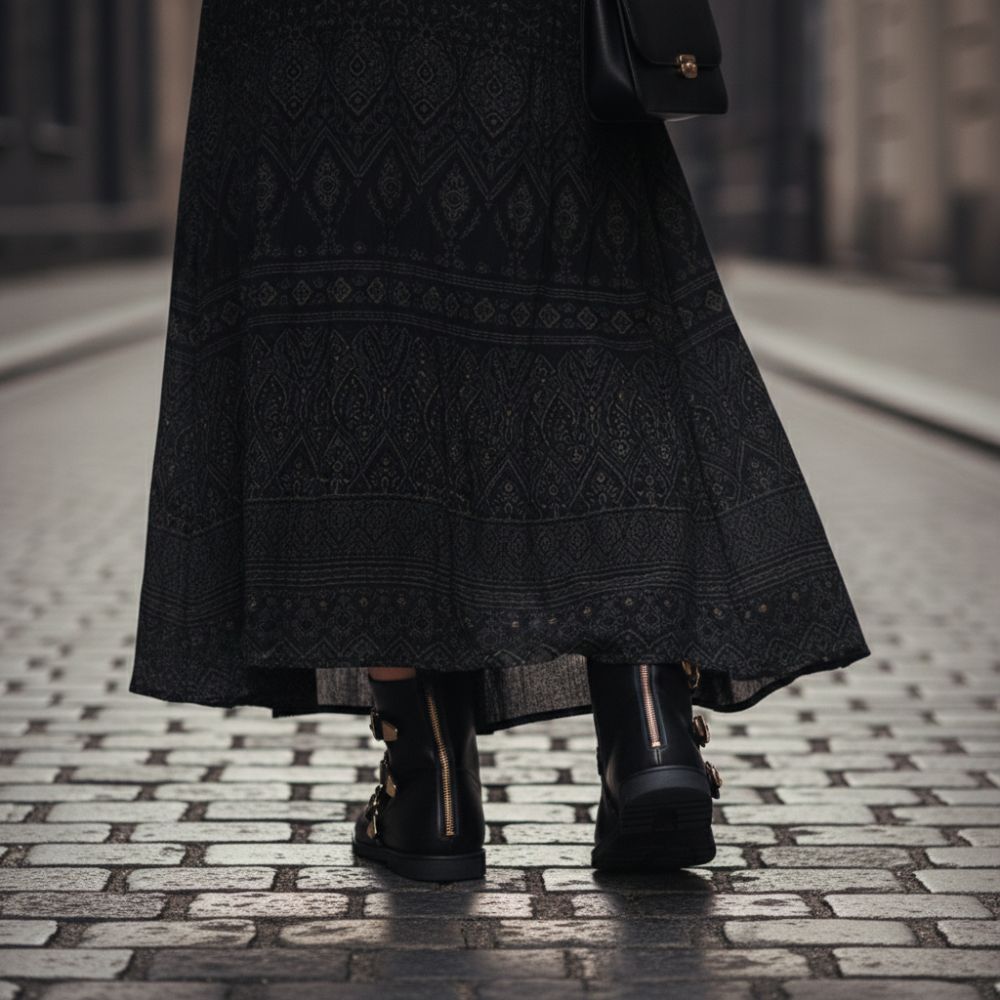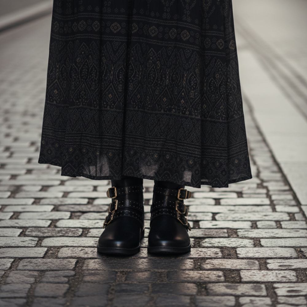 Eindelijk is hij daar, onze rocker boot qlance is nu een beetje subtieler. We hebben alleen de gespen versierd met fijne klinknagels. In tegenstelling tot het origineel ontbreken ze aan de voorkant van de schoenendop. Nu moet je beslissen of je meer gouden glans wilt of liever gewoon hebt.