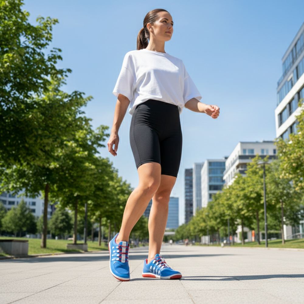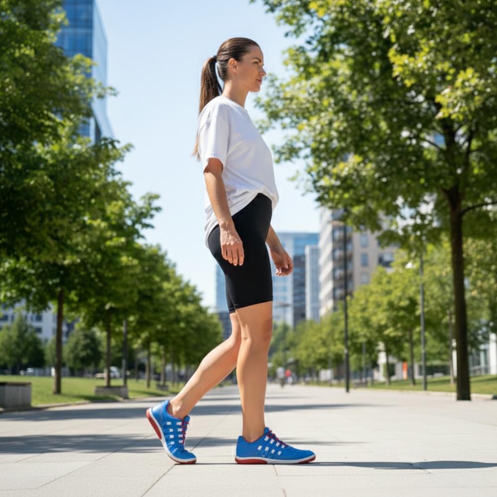 - Rubberen zool met nulhiel, waardoor de wervelkolom wordt verlicht en de gewrichten beschermt, ondersteunt de natuurlijke houding