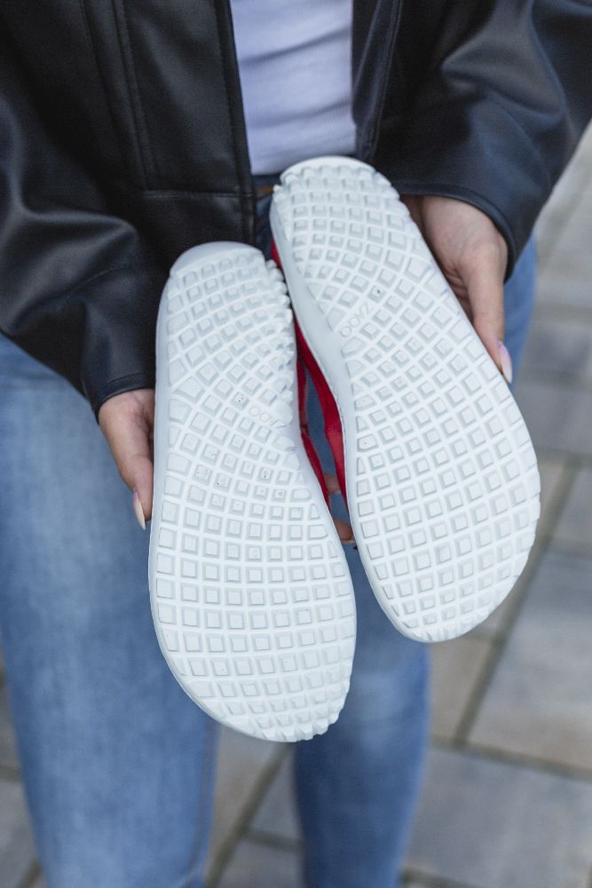 Rubberen zool met nulhiel, waardoor de wervelkolom wordt verlicht en de gewrichten beschermt, ondersteunt de natuurlijke houding